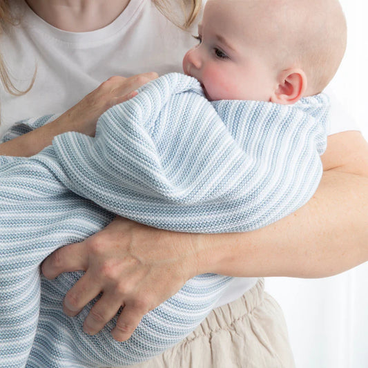 Cotton Knit Blanket - Blue Stripe