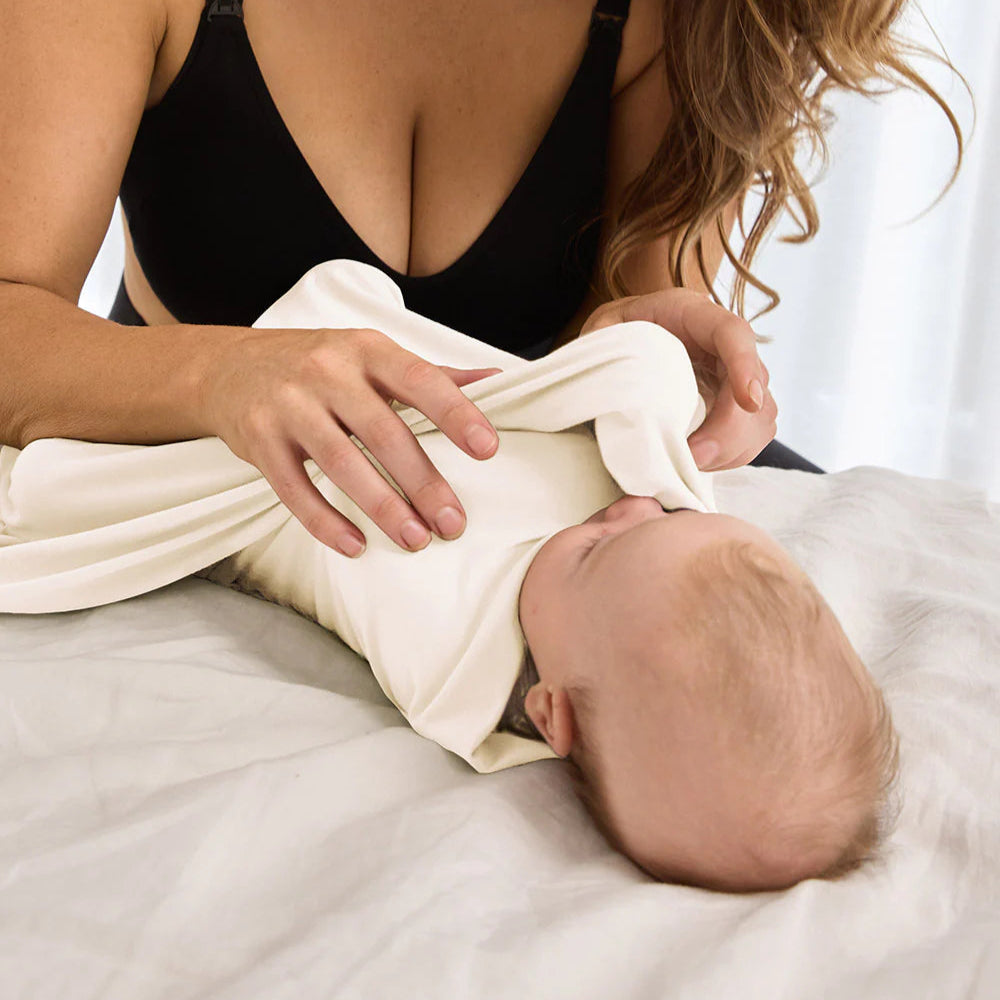 Wrap your little one in the gentle hug of our Baby Jersey Wrap in Natural White. Made from soft bamboo viscose, it’s perfect for swaddling with just the right stretch to keep your baby cozy and comfy. Use it for tummy time or as a lightweight blanket on the go—this versatile wrap grows with your baby. The playful contrast binding adds a pop of charm while keeping things practical. Soft, stretchy, and oh-so-snuggly, it’s a must-have for every new parent’s toolkit!