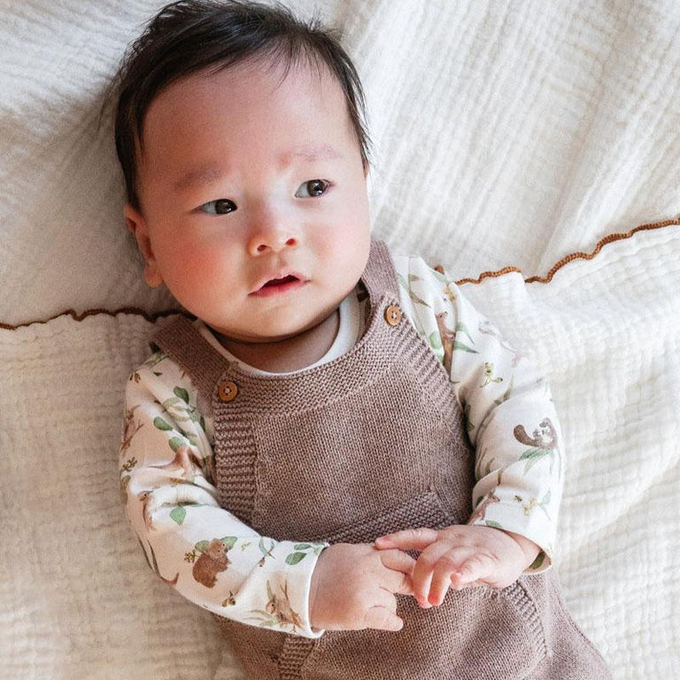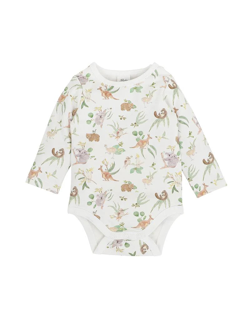 Wrap your little one in cozy charm with the Bailey Native Bodysuit! Made from 100% GOTS-certified organic cotton, this soft interlock knit piece features a playful Australian native print and eye-catching contrast bindings. Thoughtful details like concealed shoulder press studs and a convenient crotch opening make dressing and nappy changes a breeze. Perfect for chilly days, this long-sleeve bodysuit adds a dash of adorable to your baby’s winter essentials. Australian designed and owned, it’s a cute basic that’s gentle on both your babe and the planet.