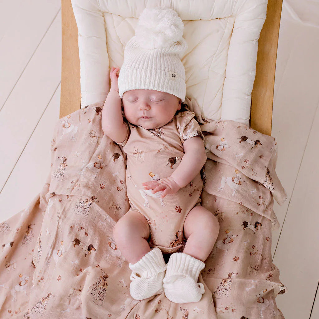 Meet the Show Pups Bamboo Bodysuit—your little guy's new favourite! Wrapped in buttery-soft bamboo and organic cotton, this bodysuit keeps him comfy and cool from morning playtime to bedtime cuddles. The cheerful puppy print brings instant joy and personality to his wardrobe, while the breathable fabric works hard to keep him happy all day long. Convenient snap closures make nappy changes quick and easy, so you can spend less time fussing and more time enjoying those precious moments. Soft, stylish, and wonderfully practical!