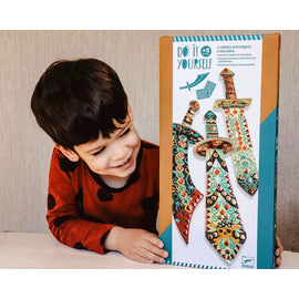 "Set sail on an adventure with the Do It Yourself Pirate Sabor! Ahoy matey, these swords are perfect for playdates, birthdays, or just a fun afternoon. Develop patience, creativity, and dexterity while creating 3 buccaneer-worthy swords. Suitable for ages 5+."