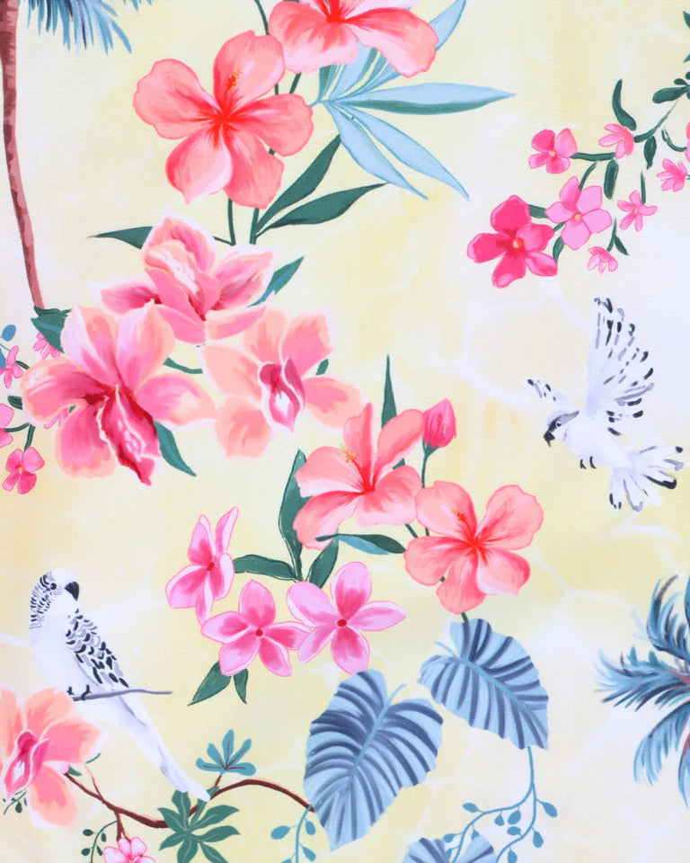 Milana Yellow Resort Sundress - Milana Yellow Print Sunshine and twirls await in this show-stopping tropical print sundress! Bursting with vibrant yellow florals, it's the ultimate holiday mood-setter for beach days and warm summer nights. Playful puff sleeves frame the shoulders while a gathered skirt swishes with every movement, and a cheeky back cut-out with tie detail adds that extra dash of fun. Crafted from 100% cotton with a fully lined silhouette, waist piping, and a square neckline, this dress is ready to make a splash wherever adventure takes you!