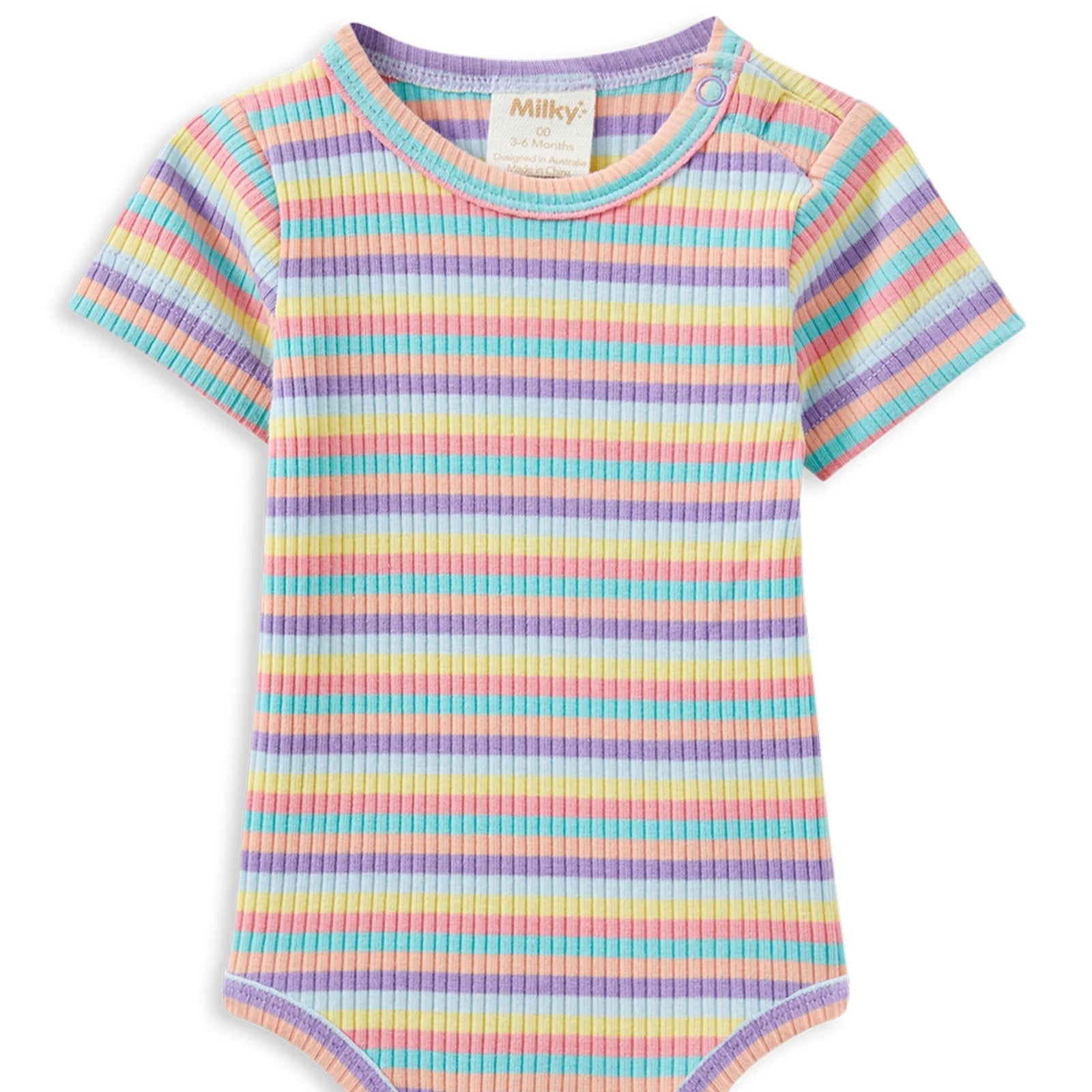 Keep your little one cozy and cute in the Multi Stripe Rib Bubbysuit! With its playful stripes and soft, stretchy fabric, it’s perfect for summer days or layering when the weather cools down. Designed for all-day comfort and durability, this bubbysuit moves with your child from playdates to nap time, making it an essential in any tiny wardrobe. Available in a variety of lively colors, it’s the go-to piece that combines style and easy care for endless adventures.