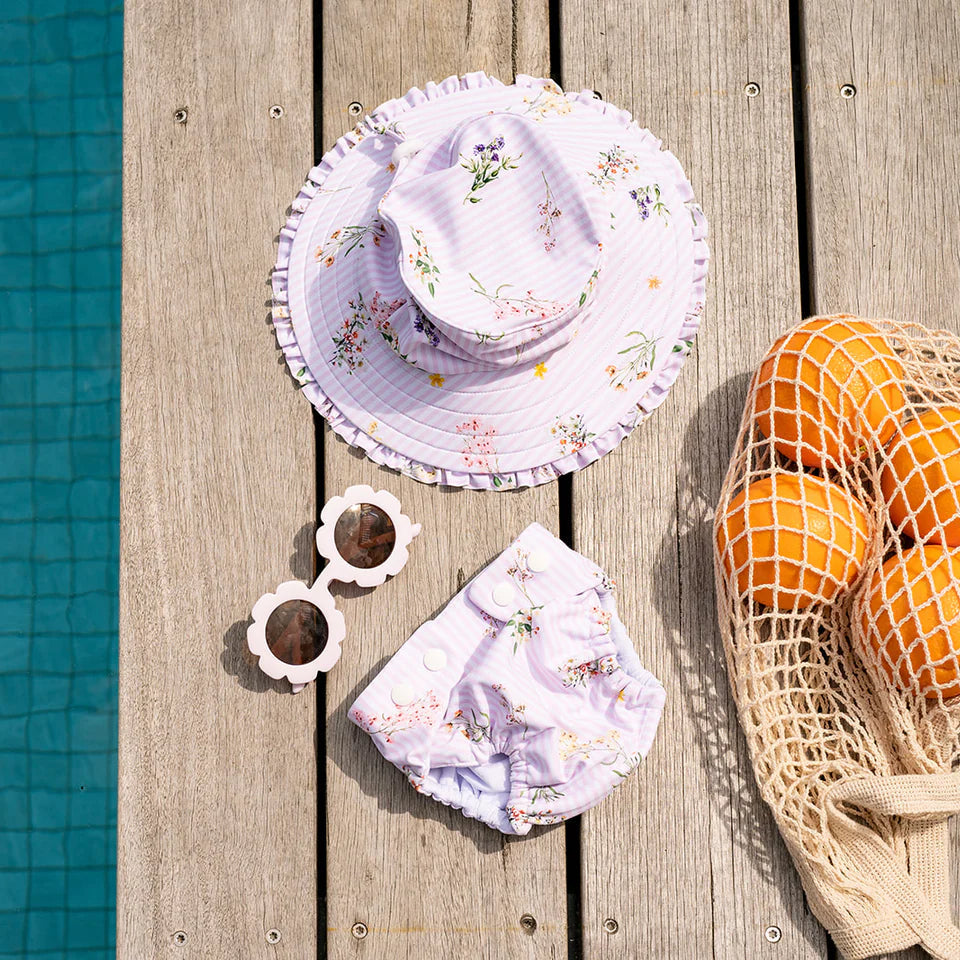 Splash into fun with the Myra Aqua Nappy, designed for little beach babes who love to play! Featuring a charming striped floral print, this nappy offers a secure fit with adjustable waist snaps and soft leg elastics for all-day comfort. Made from stretchy polyester elastane, it’s UPF 50+ to protect delicate skin and resistant to chlorine for long-lasting wear. Perfectly paired with the Myra pink rash top, it keeps your little one comfy and carefree during every splashy adventure.